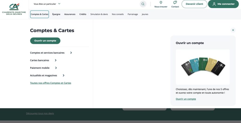 Avec ses multiples services en ligne, sa sécurité renforcée et son approche personnalisée pour chaque client, le Crédit Agricole Charente-Maritime Deux Sèvres rend la gestion de votre compte bancaire simple et accessible, à tout moment. Que vous soyez un particulier ou un professionnel, cette banque est équipée pour répondre à vos besoins financiers, en ligne et en agence. Pour ceux qui n’ont pas encore ouvert de compte ou qui souhaitent accéder à plus de services, il est temps de prendre contact avec l’agence la plus proche de chez vous.